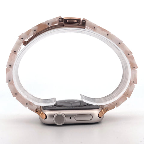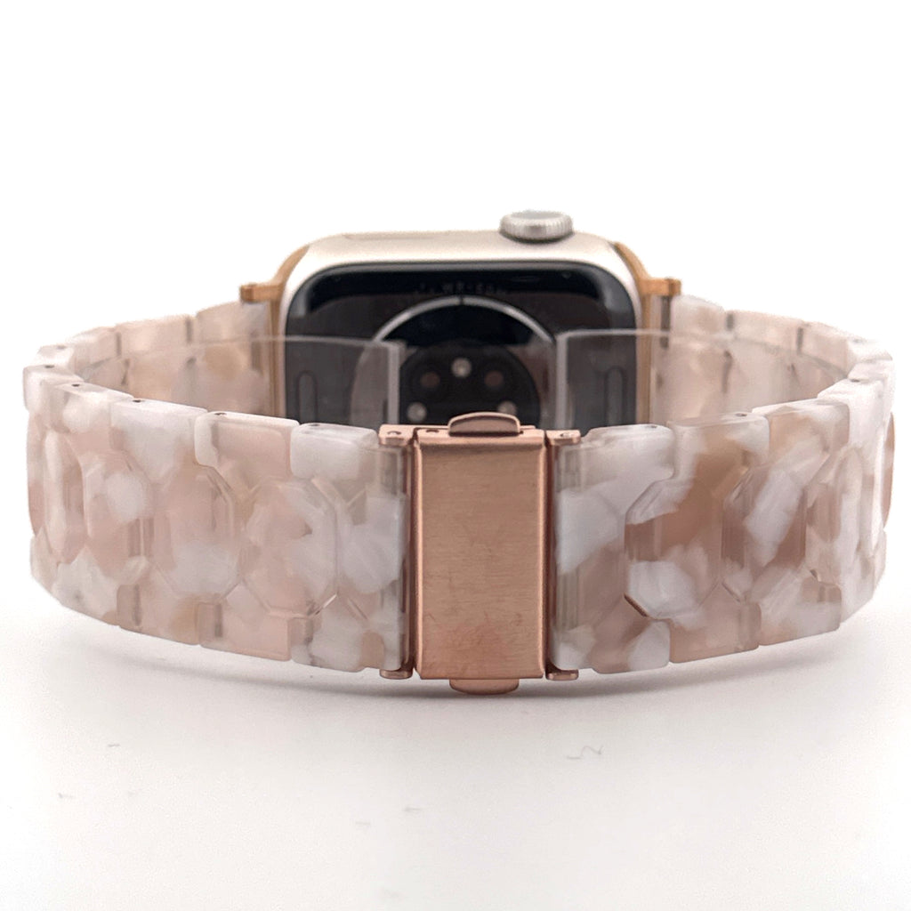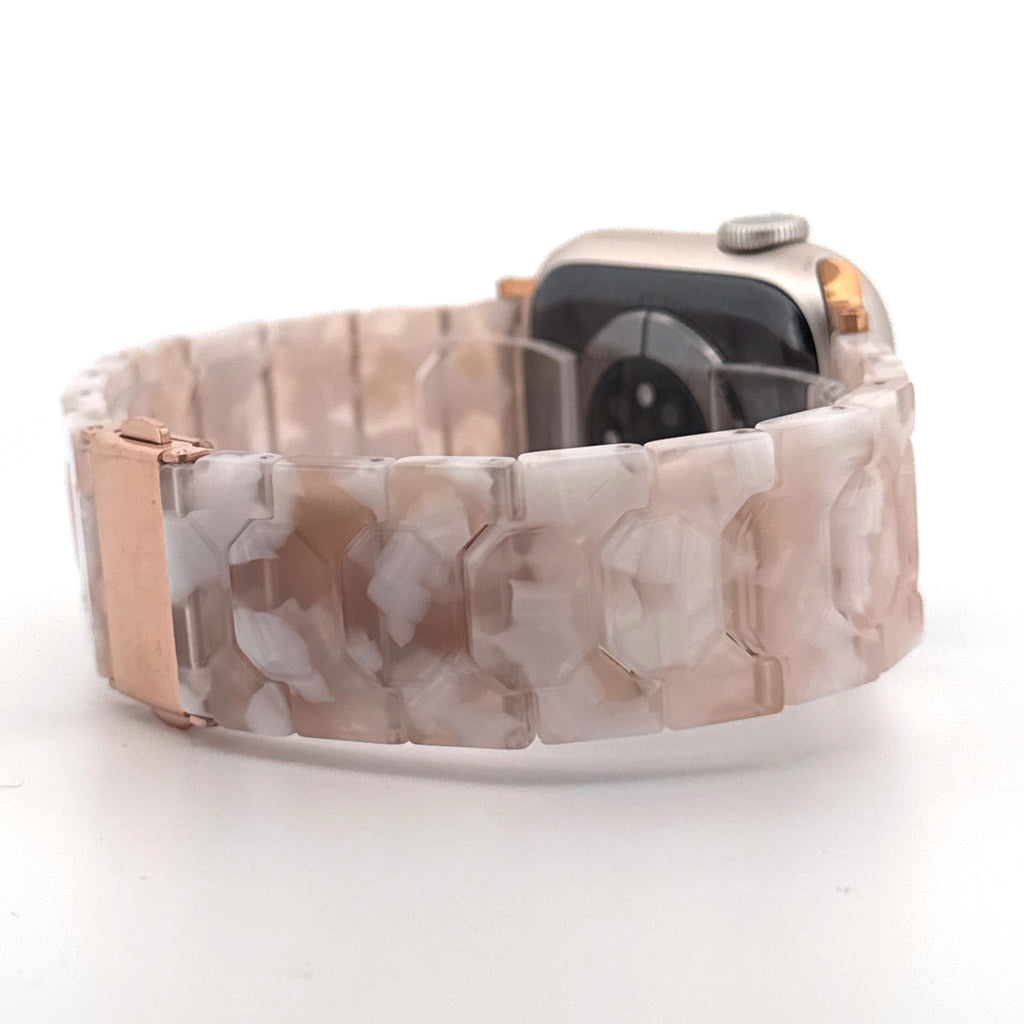 Crafted from premium resin, the Pink Apple Watch bracelet is lightweight, skin-friendly, and built for durability, ensuring all-day comfort without sacrificing elegance. Its linked bracelet design provides a secure yet flexible fit, while the polished pastel finish adds a fashionable edge that complements both casual and formal styles.