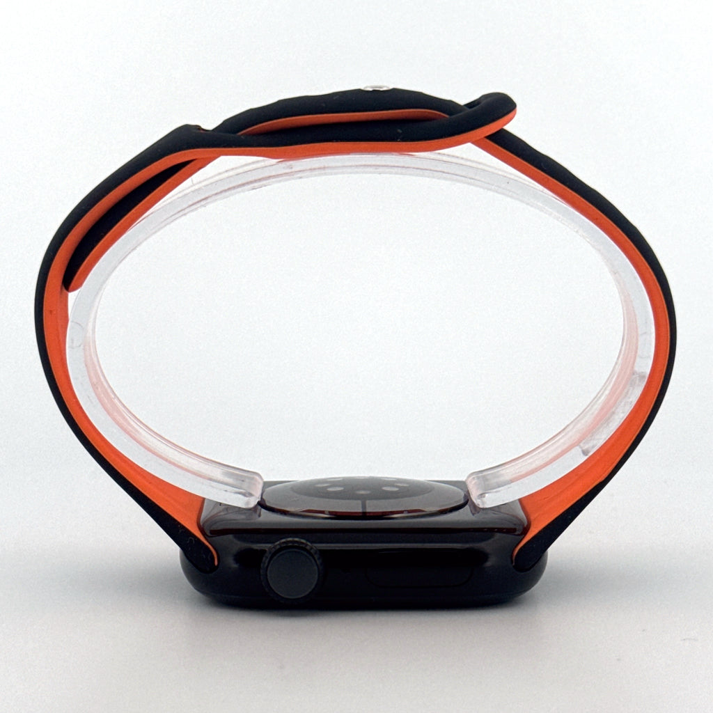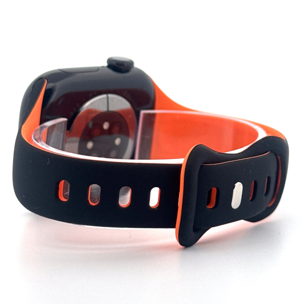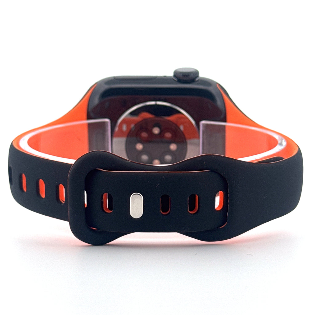 Bring a sporty edge to your Apple Watch with the Slim Silicone Sport Band in Black & Orange. Combining comfort, durability, and bold styling, this lightweight strap is perfect for those who want a practical band with a striking modern look.