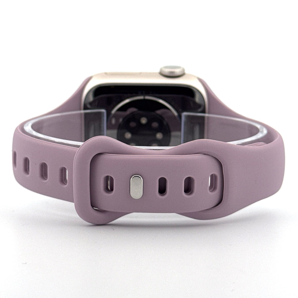 Add a soft, stylish accent to your Apple Watch with the Slim Silicone Sport Band in Light Purple. Its slim, lightweight design ensures all-day comfort, while the gentle pastel shade offers a modern, elegant look that works for both casual and active wear.