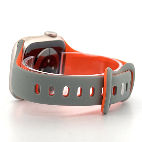 Bring a vibrant, energetic look to your Apple Watch with the Slim Silicone Sport Band in Lotus Blue & Orange. This striking two-tone strap pairs a fresh, serene blue with a bold, lively orange, creating a playful yet stylish design that stands out.