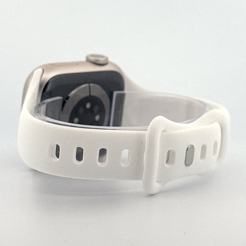The Slim Silicone Sport Band in White combines simplicity and functionality. Its secure pin-and-tuck closure keeps the strap firmly in place, while the classic neutral colour pairs beautifully with any Apple Watch face or outfit.