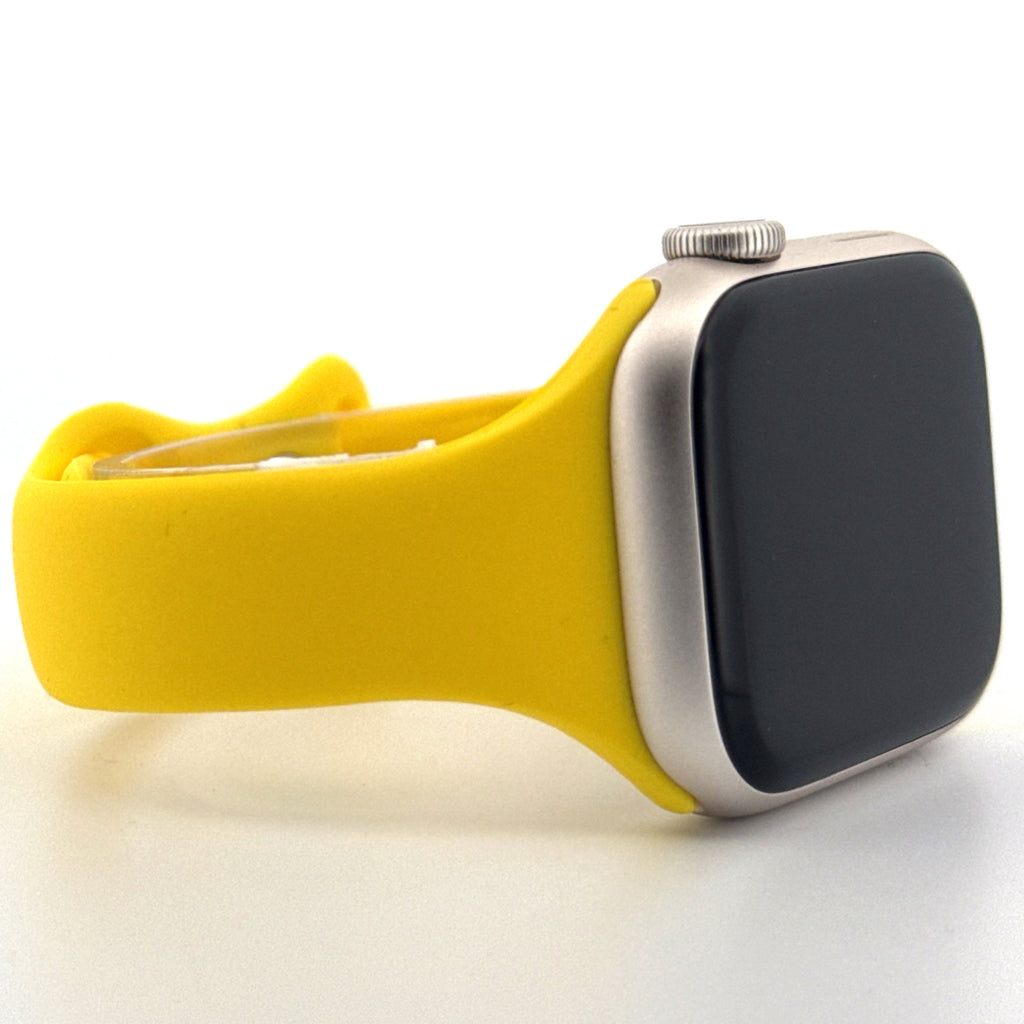 Brighten up your Apple Watch with the Slim Silicone Sport Band in Yellow. This vibrant, cheerful colour adds a fun and energetic touch to your wrist, perfect for workouts, casual wear, or making a statement wherever you go.