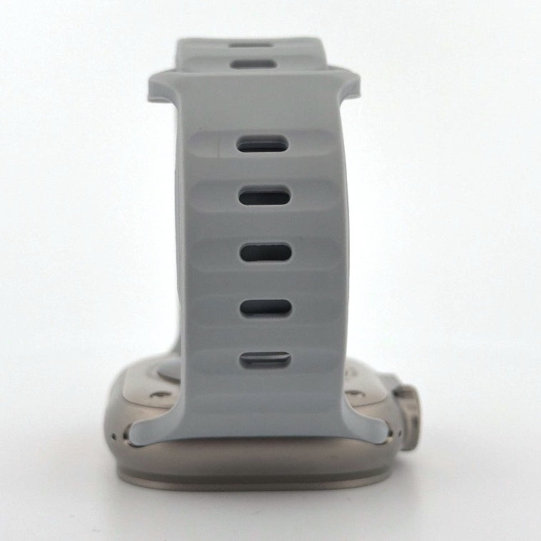 Introducing the Explorer Style Silicone Band, made to take your smartwatch experience to the next level. This high quality gray band is designed to fit perfectly with all generations of Apple Watches including Ultra models. It features a unique ribbed design that combines comfort and style for an unbeatable combination. With durable and secure silicone material, this strap is great for the active explorer who wants both style and protection for their smartwatch.