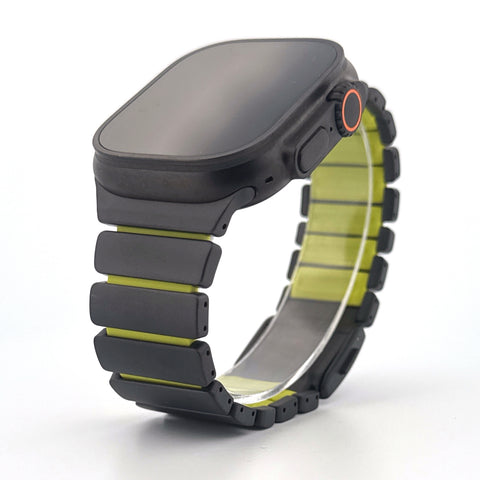 💚 Hybrid Magnetic Titanium & Silicone Fusion Band (For Apple Watch) – Black Titanium & Green