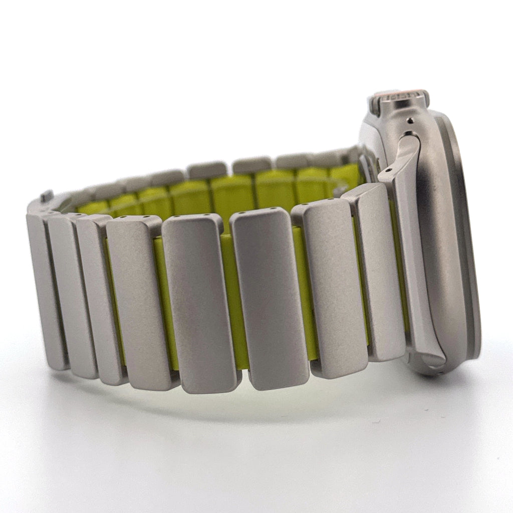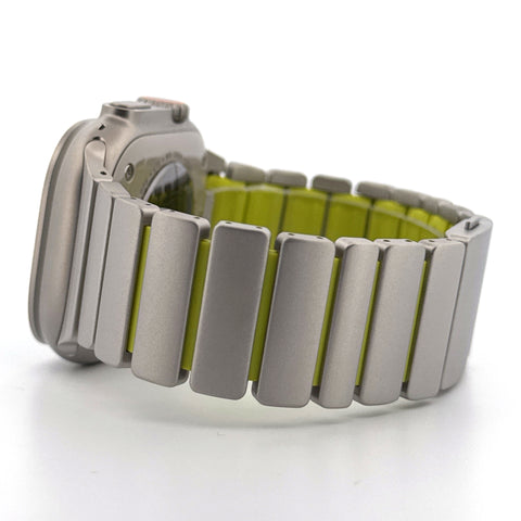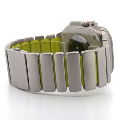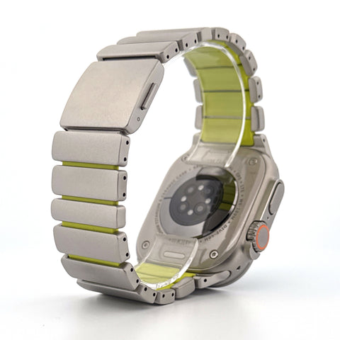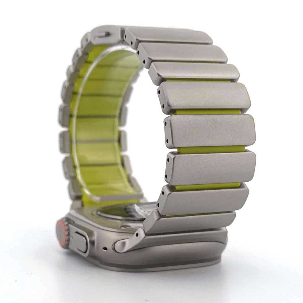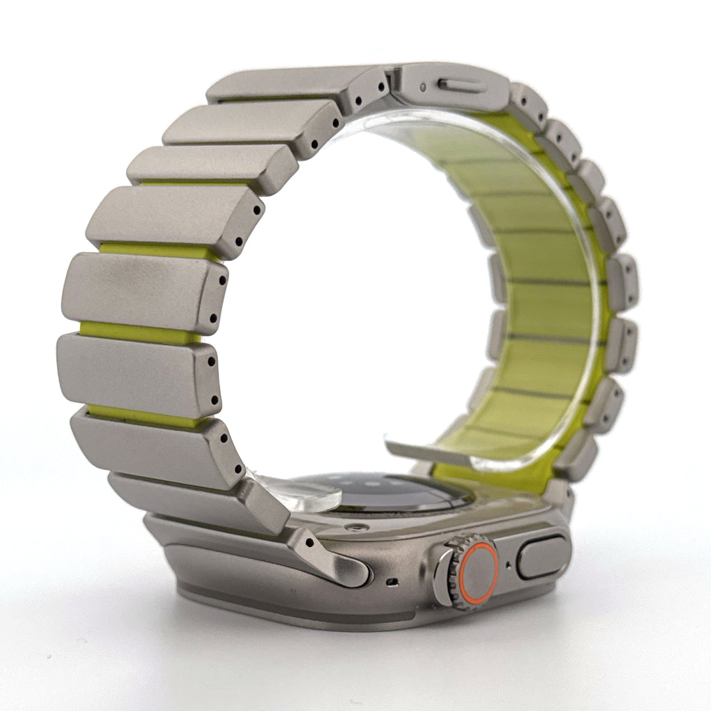 The Hybrid Magnetic Titanium & Silicone Fusion Band – Titanium & Green offers premium craftsmanship and functional style in one sleek package. It’s the perfect choice for those who want a strap that looks as sharp as it performs — engineered to match the durability and elegance of your Apple Watch Ultra.