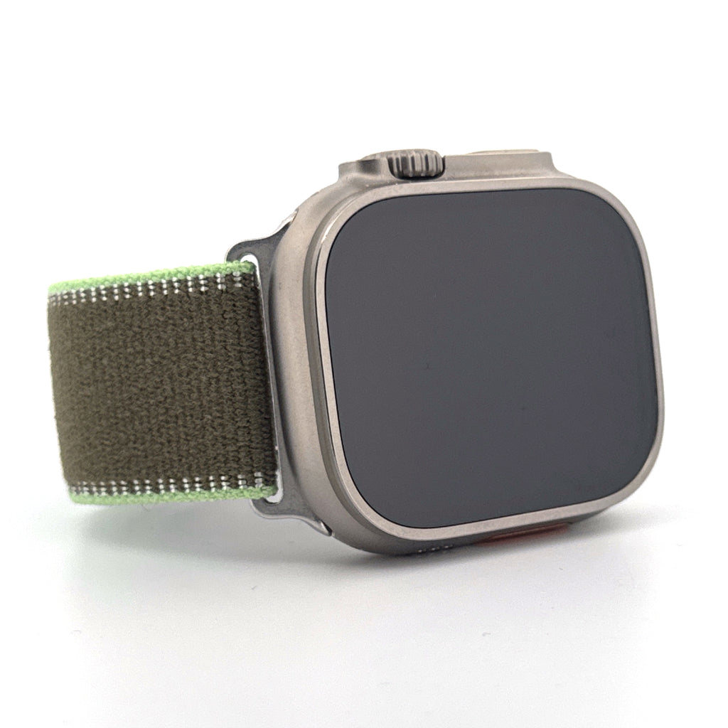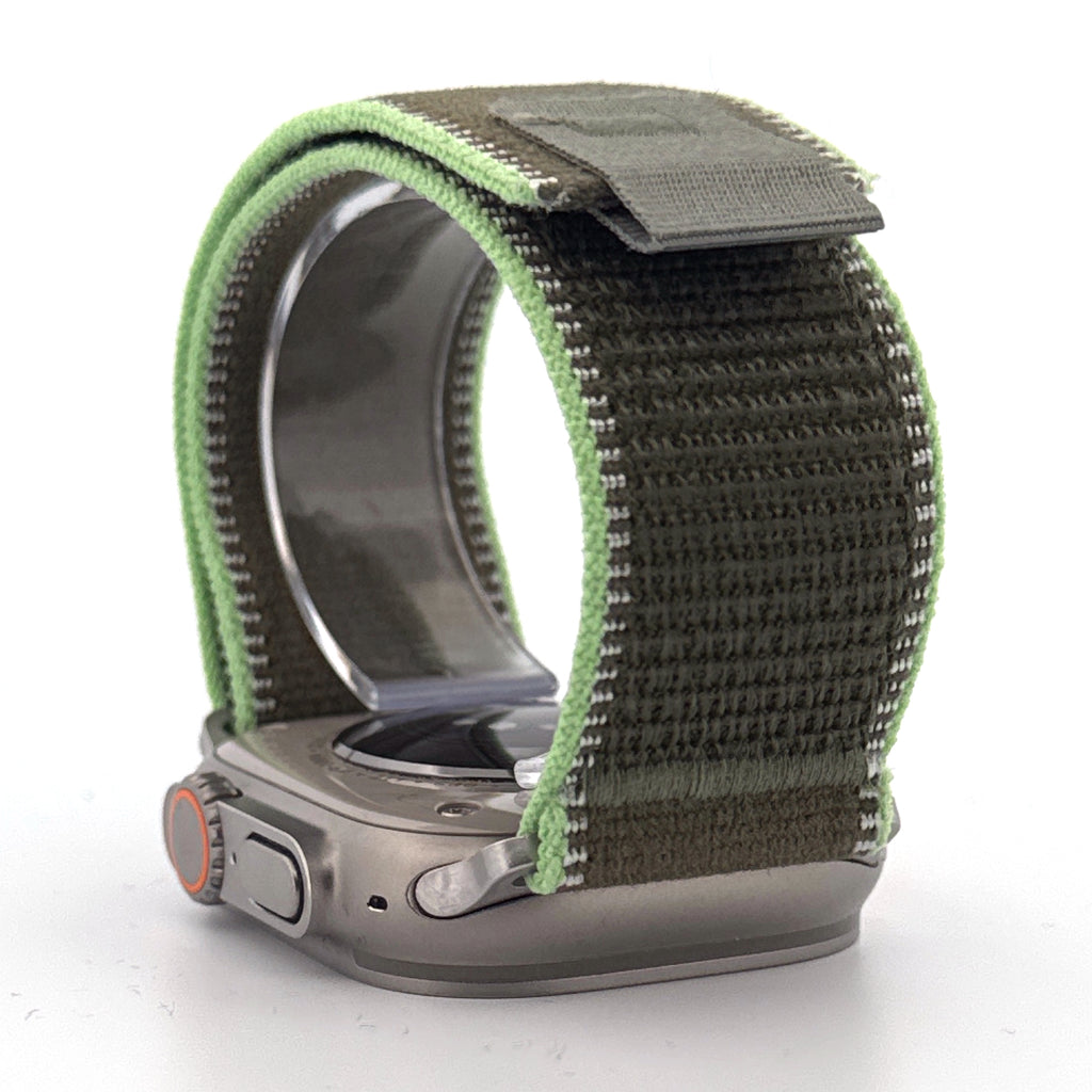 Upgrade your Apple Watch with the Trail Loop Nylon Band in Moss Green 🍃⌚. Crafted from high-quality, durable nylon 💪, this strap combines comfort, style, and resilience for every adventure 🌄. The deep moss green base provides a sophisticated, earthy look, while bright green stripes along each edge ✨ add a modern, dynamic touch. Perfect for outdoor activities 🏞️, workouts 🏃♂️, or everyday wear, the Trail Loop keeps your watch secure and stylish.