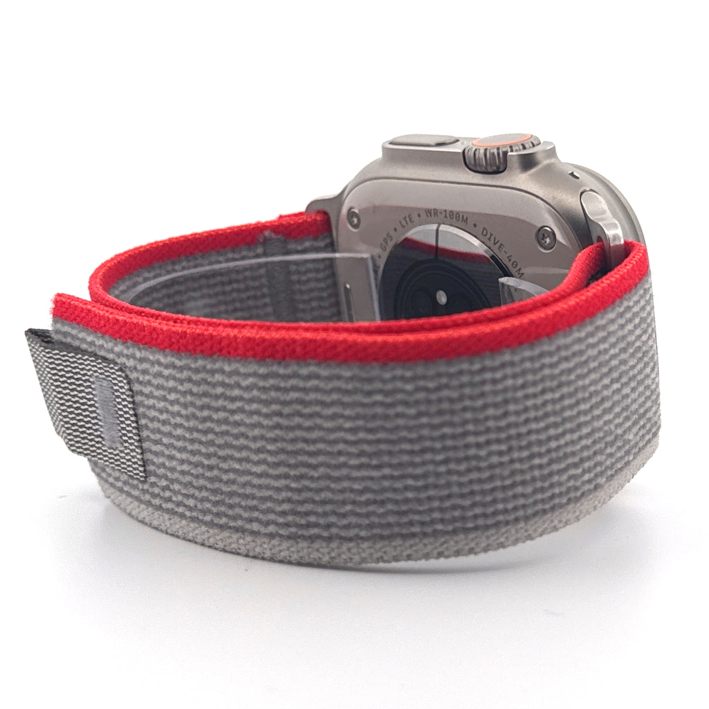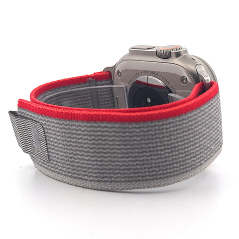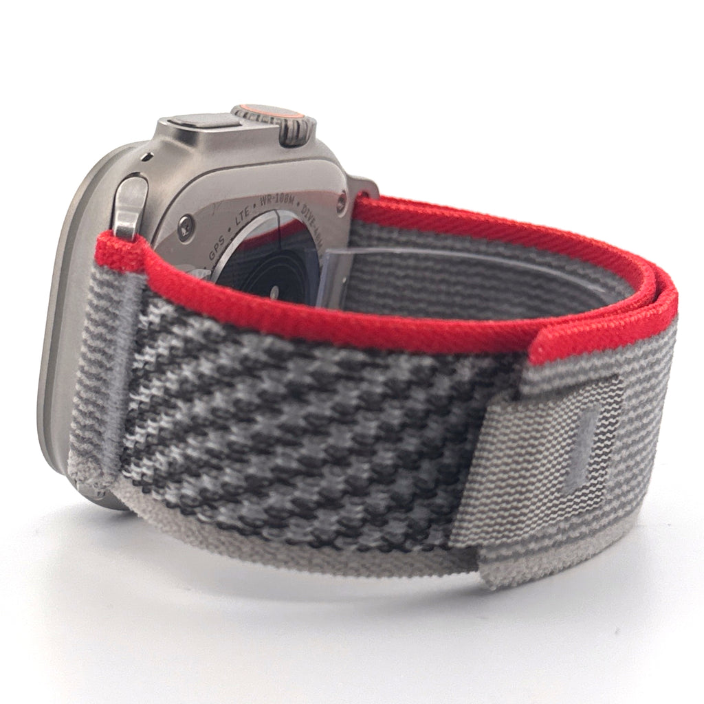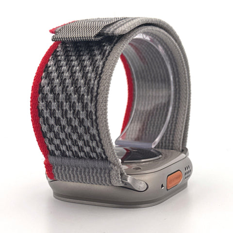 Bring motorsport energy to your Apple Watch with the Trail Loop Nylon Band in Pitlane 🏁⌚. Built from high-quality, durable nylon 💪, this strap combines performance, precision, and comfort. The carbon-fiber–inspired grey base mirrors the look of a racetrack surface, while a bold red stripe along one side adds a striking touch of speed and style. Designed for those who live life in the fast lane, the Pitlane band offers a perfect blend of durability, adjustability, and modern design — ideal for both adventure and everyday wear.
