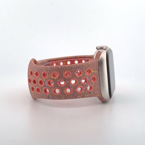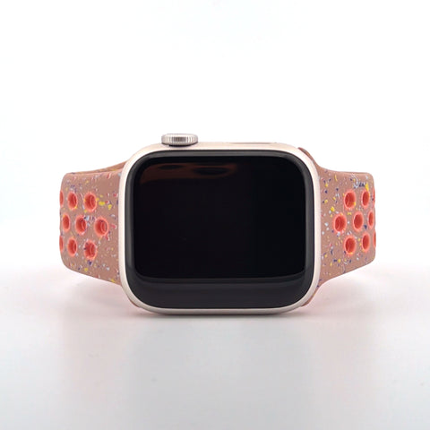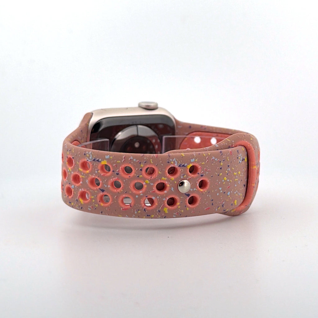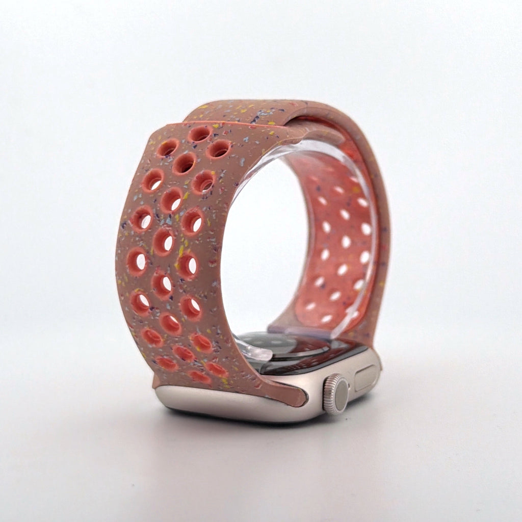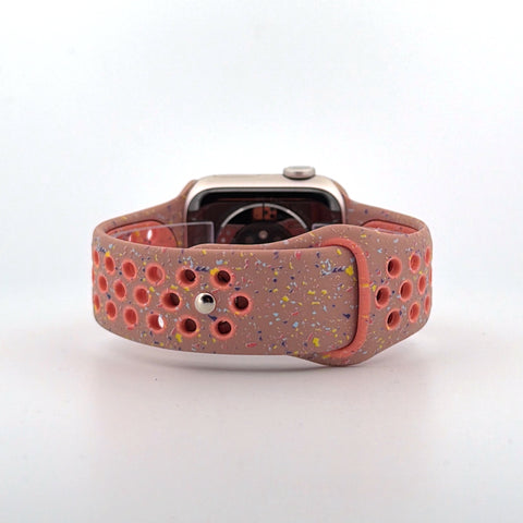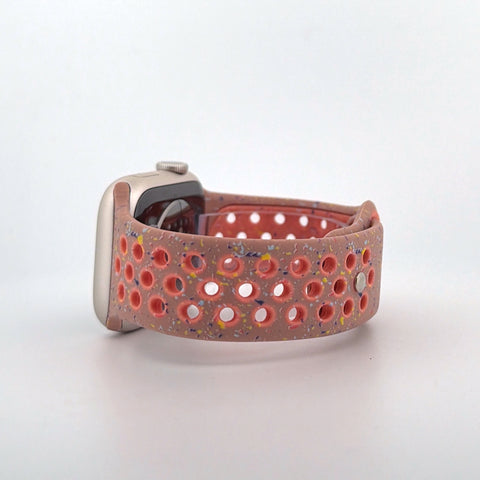 The perforated Nike-style design enhances breathability, helping to keep your wrist cool during workouts and throughout the day. A secure pin-and-tuck closure ensures a reliable fit, while the vibrant alpenglow pink colour adds a striking, energetic look to your Apple Watch.