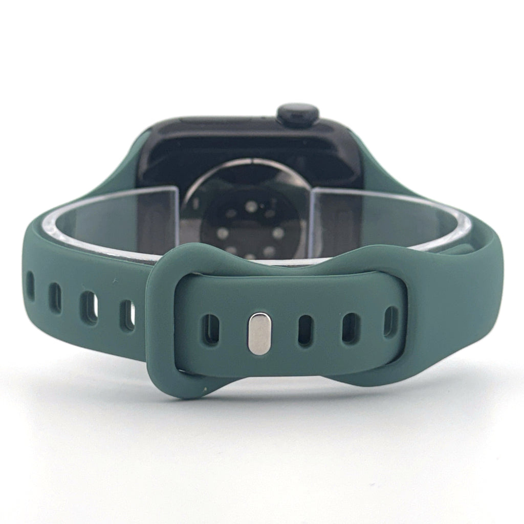 Crafted from premium, sweat-resistant silicone, the Pine Green strap is soft, flexible, and comfortable on the skin. Its slim, lightweight design ensures a secure fit throughout the day, making it ideal for workouts, office wear, or casual outings.