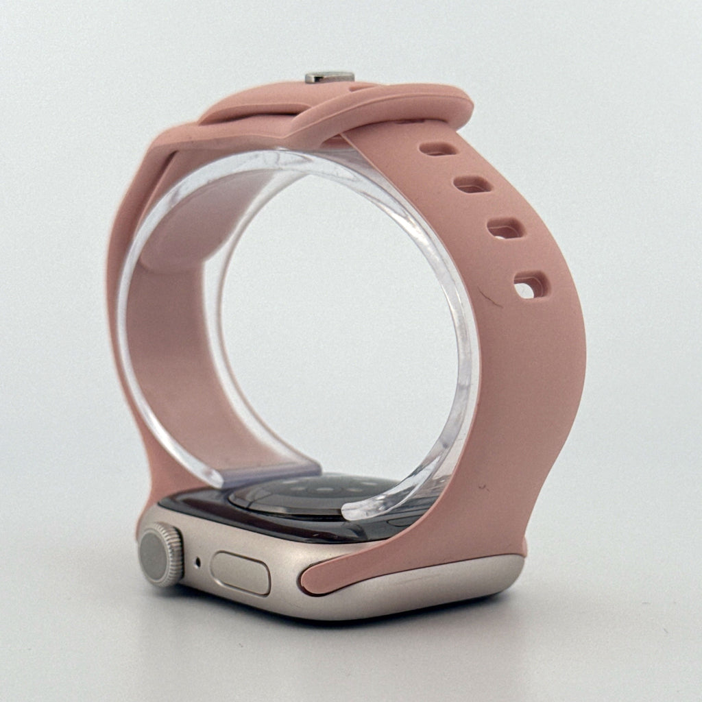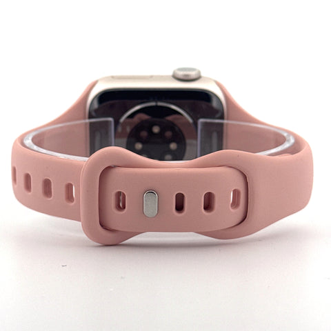 The Slim Silicone Sport Band in Pink Sand combines style and practicality. Its secure pin-and-tuck closure keeps the strap comfortably in place during workouts, work, or casual outings.